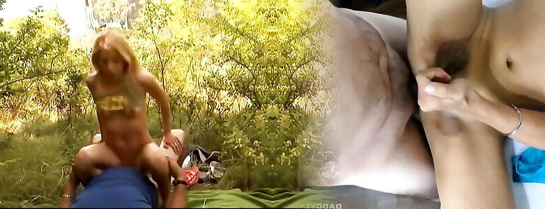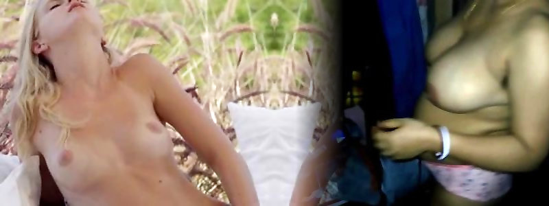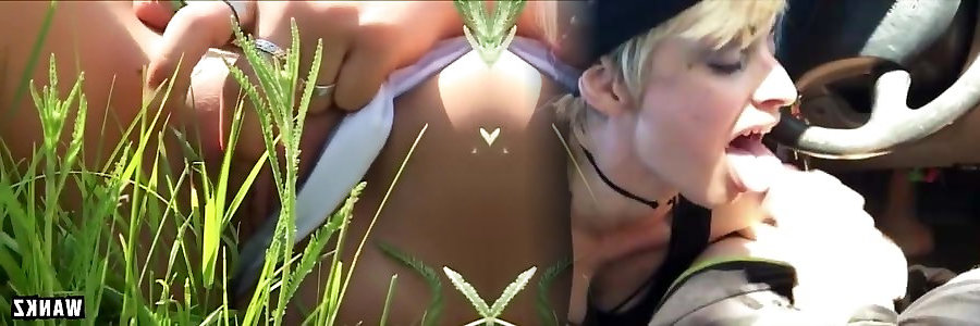 spensierata bionda con belle tette scopata da hippy in campo