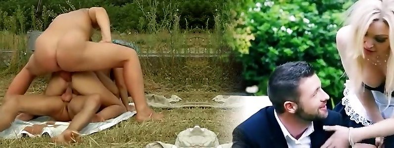 2 compagni di scopare lussureggiante milf in campo