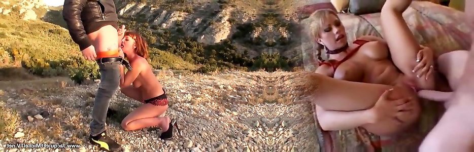 jeune fille prise on sandwich entre 2 mecs en cuir