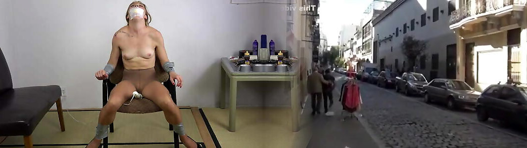 ragazza con palla gag e nip clip spinte dildo culo