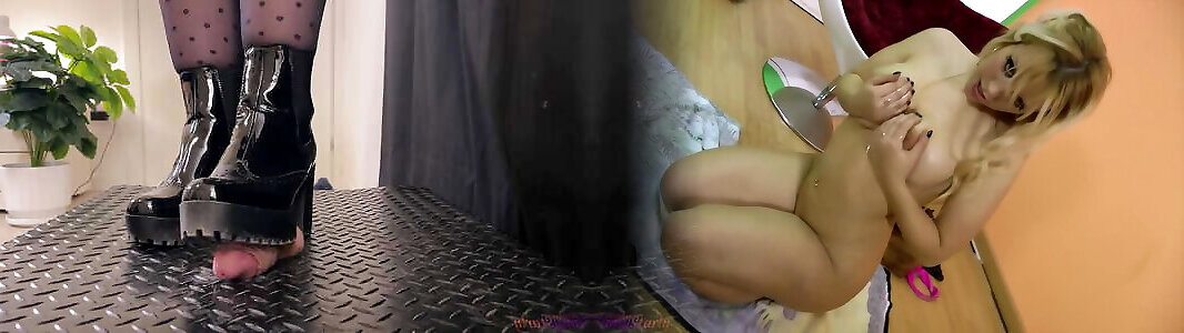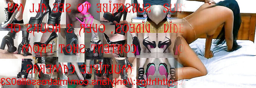 mistress grin macina il suo schiavo & 039;s cazzo nella sua piattaforma sandali tacco alto