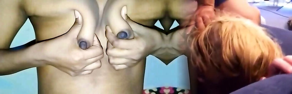 bellezza bionda strofina il cazzo sul petto e prende il cazzo lungo nella sua bocca
