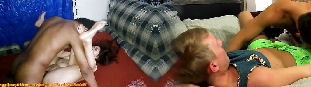 bionda e bruna condividere insaziabile ragazzo nero & 039; s implementare in camera