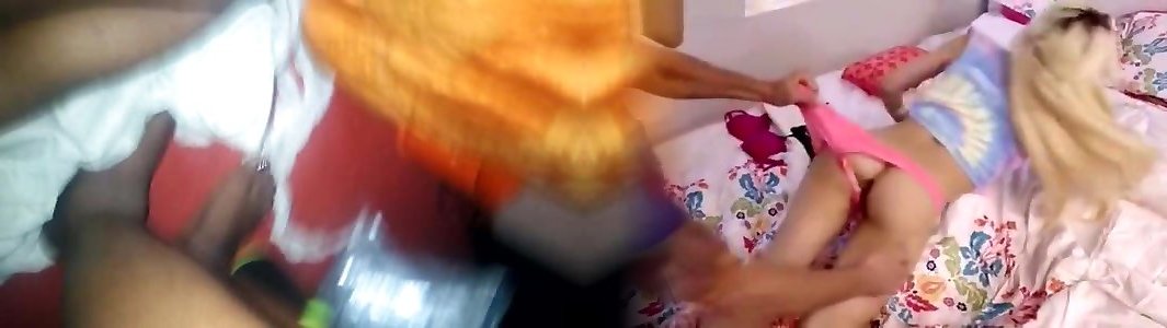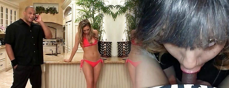 biondo teen prende spesso nero cazzo in bocca e micio