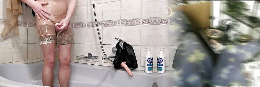 una ragazza con grandi tette trucchi e scopa se stessa sotto la doccia mentre il suo fidanzato è rilassante!