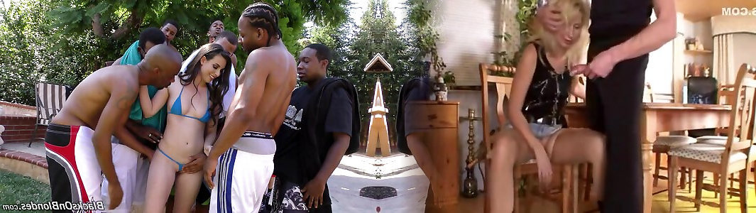 alla fine di una festa una ragazza lattea è scopata e nutted da dark-hued tizi