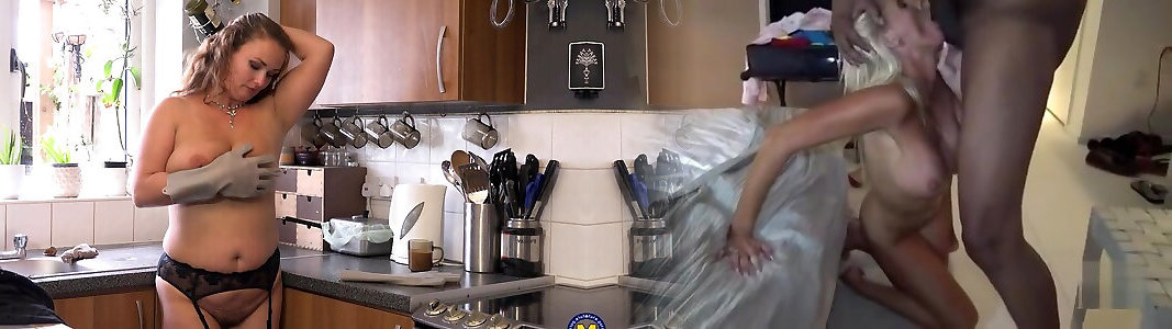 paffuto milf carina ottiene nudo e si masturba con un giocattolo in cucina