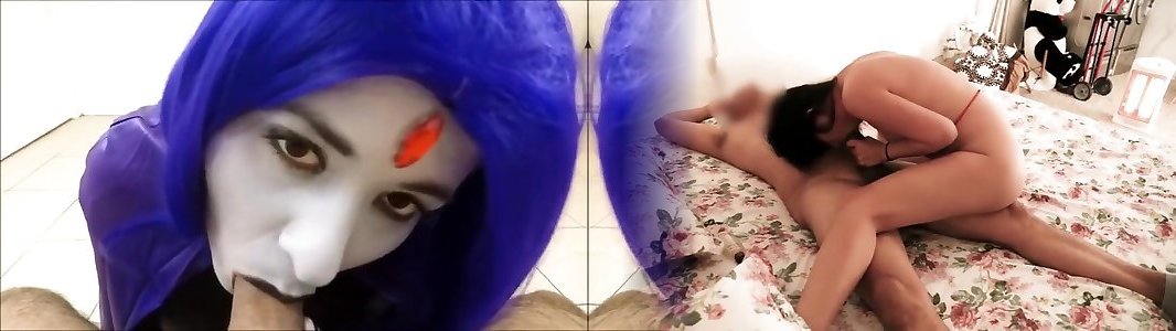 raven inala su un cazzo carnoso gioco in costume di teenie titans