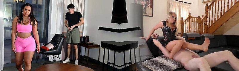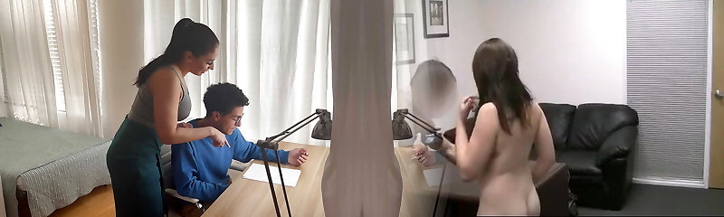 Voluptuous Stepmother [Montse Swinger] vigirously pulverizes Shy & Young Stepson