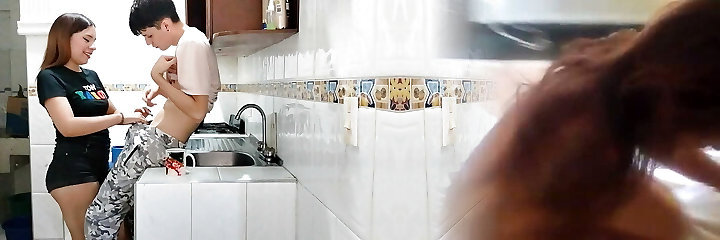 My stepmom bj's my dick in the kitchen