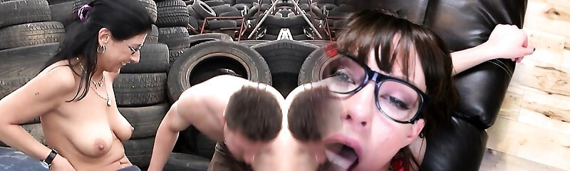 Horny mature whores in fishnets sucking spunk-pumps in orgy
