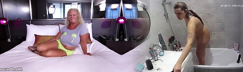 Step mom caught me jacking off over her panties in a collective hotel room.