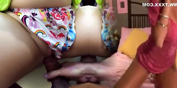 надеваю подгузник для папы. совсем одна!