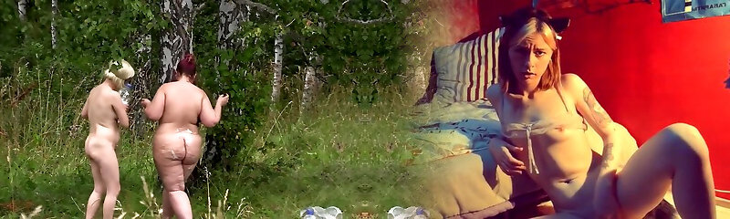 bare women in the forest. peeping, hidden camera