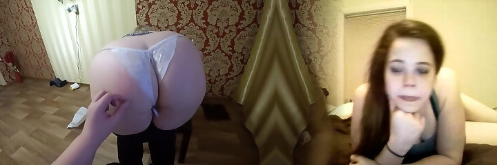 Girlfriend fucked mature milf with fat rump in white panties. Lezzies POV.