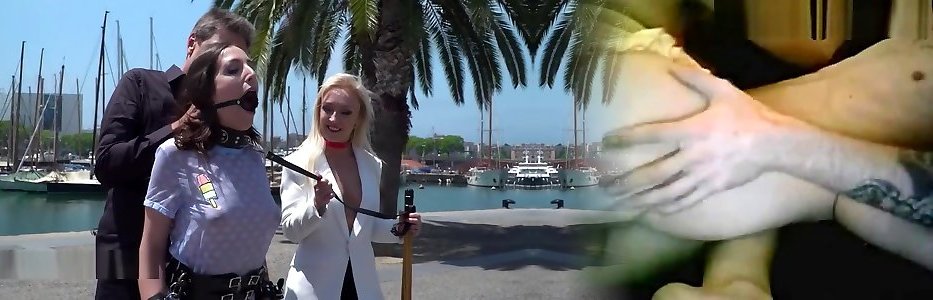奴隶把她的喉咙使用,然后被蒙上眼罩和皮带!
