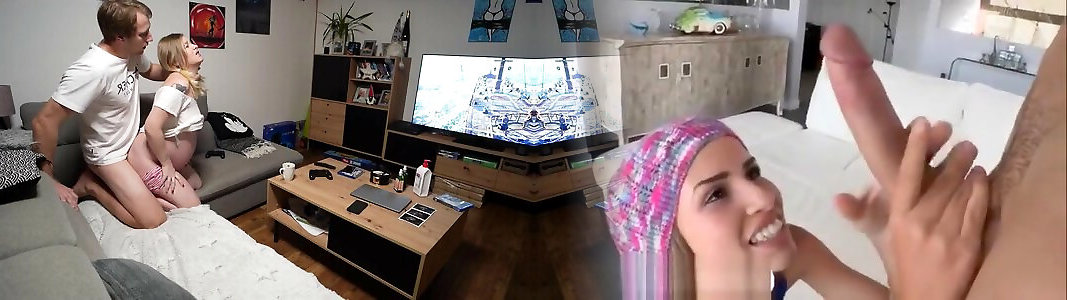 Preggo金发碧眼的发挥PS4和粉碎与她的丈夫在狗的方式